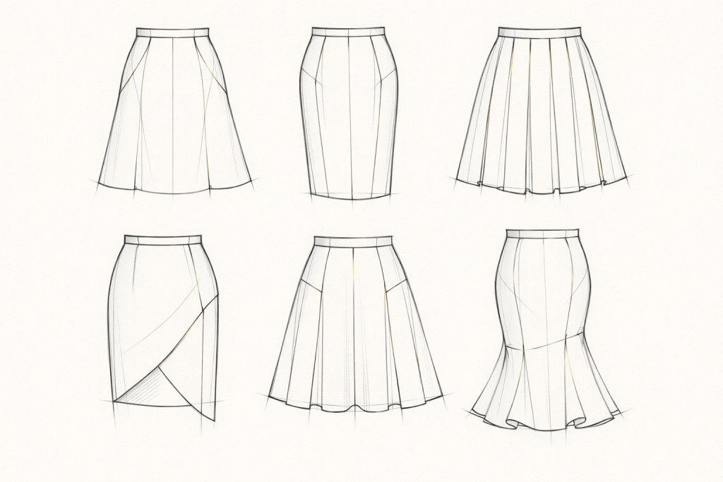 Este patrón sirve como punto de partida para desarrollar cualquier tipo de falda —recta, lápiz, evasé, con tablas o godets— mediante transformaciones técnicas, garantizando un buen calce, proporción y funcionalidad en la prenda final.